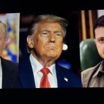 mages of the president Donald Trump^ Volodymyr Zelenskyy and Vladimir Putin side by side